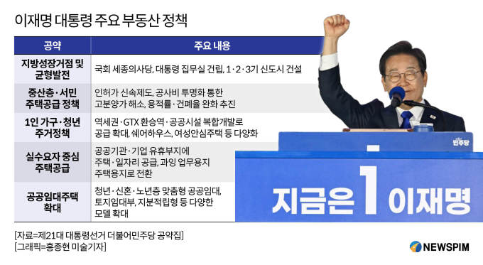 이재명 대통령은 부동산 정책 공약의 중심축을 다음과 같이 설정했습니다:
